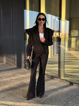Черные женские брюки прямого свободного кроя сочетают в себе повседневный комфорт и изысканную деталь. Модель со средней посадкой дополнена изящным декоративным элементом по верхнему срезу — тонкой текстильной вставкой, стилизованной под край нижнего белья. Эта деликатная деталь придает образу игривую нотку и особый шарм, оставаясь при этом тактично скрытой под одеждой.
