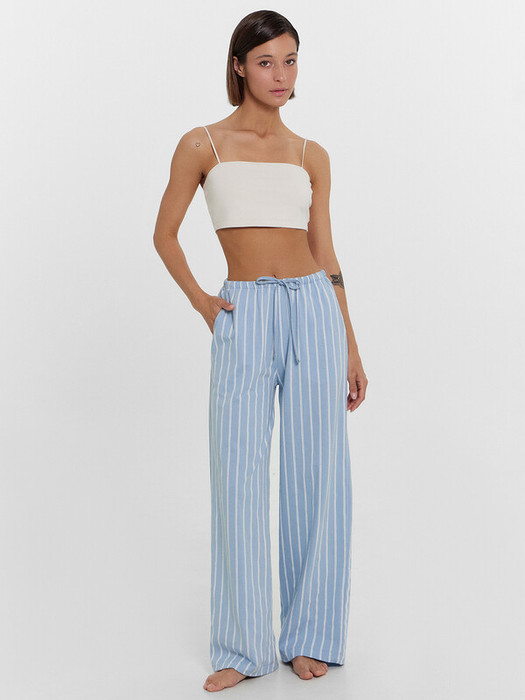 Брюки с посадкой на талии свободного силуэта. Пояс цельнокроеный с резиной внутри 20RV. По центру пояса пробиты петли, протянута бейка из основного полотна. На передних деталях карманы «хулиганы». Низ изделия застрочен швом в подгибку.