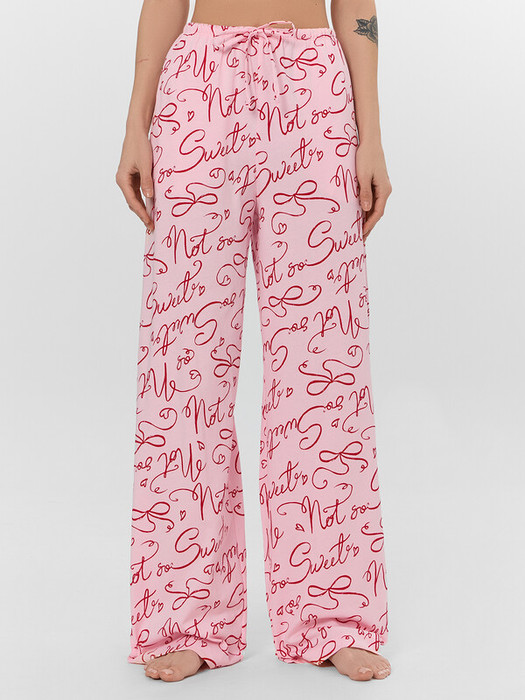 Домашние брюки с принтом — это уют и свобода в каждой детали. Высокая посадка и свободный силуэт из мягкого хлопкового трикотажа обеспечивают комфорт и полную свободу движений, идеально подходя для отдыха дома.