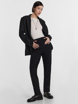 Посадка брюк средняя. Пояс цельнокроеный с эластичной тесьмой внутри. Низ брюк обработан в подгибку.