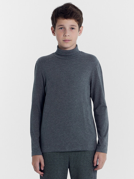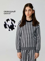 Джемпер с высоким воротником-стойкой для мальчиков. Выполнен из хлопкового трикотажного полотна. Джемпер прямого силуэта, длиной до середины бедер. Рукава длинные. На уровне локтей – декоративные детали-заплатки овальной формы. Стильно!