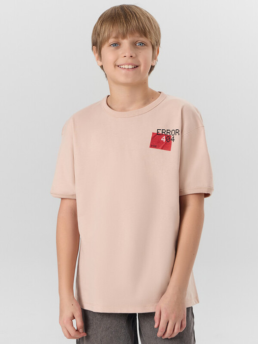 Джемпер для мальчиков свободного силуэта. Рукава втачные короткие. Горловина круглой формы. Горловина и низы рукава окантованы рибаной. Низ футболки обработан швом вподгибку на 2-ух игольной плоскошовной машине.