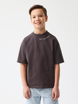 Футболка свободного силуэта из хлопковой трикотажной кулирки. Длина до середины бедер. Рукава короткие. Горловина круглой формы, с  обтачкой из рибаны. Спущенная линия плеча дарит особый комфорт. Стильно и удобно!