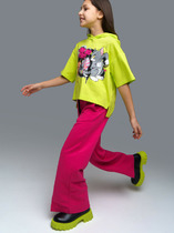 Футболка свободного силуэта из хлопковой трикотажной кулирки. Длина до середины бедер. Рукава короткие. Горловина круглой формы, с  обтачкой из рибаны. Спущенная линия плеча дарит особый комфорт. Стильно и удобно!