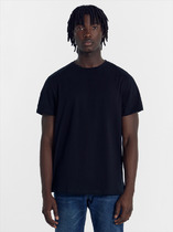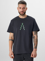 Футболка прямая свободная. Горловина округлой формы обработана обтачкой из рибаны. Шов втачивания обтачки по спинке закрыт бейкой из основного полотна. Линия плеча слегка спущена. Рукава втачные, корткие. Нижние срезы футболки и рукавов обработаны швом вподгибку на 2х шовной плоскошовной машине.