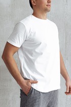 Нижний срез футболки обработан швом в подгибку на 2х игольной плоскошовной машине.