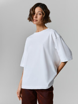 Футболка выполнена из трикотажного полотна кулирка. Футболка свободная, оверсайз.