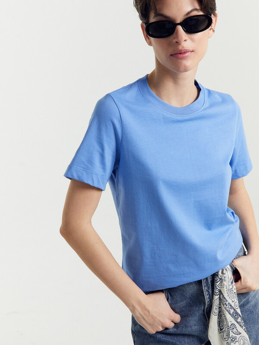 Футболка прямого силуэта из трикотажного полотна кулирка. Горловина круглой формы, широкая обтачка из рибаны.