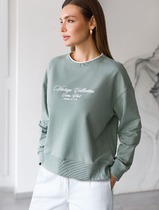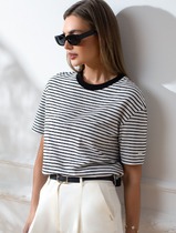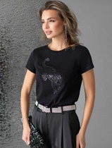 Футболка прилегающего силуэта, укороченная. Горловина круглой формы с обтачкой из основного полотна. Рукава втачные короткие, с отрезными манжетами. Нижний срез обработан швом вподибку.