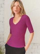 Горловина округлой формы обработана бейкой в 3 сложения из рибаны.