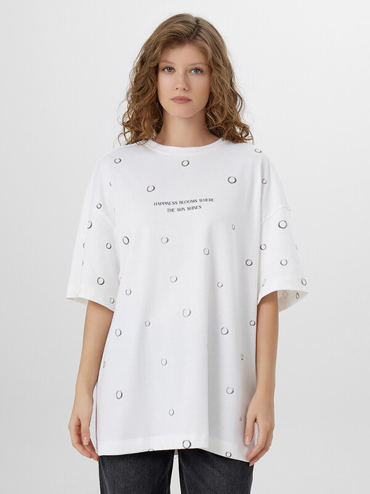Женская футболка силуэта оверсайз из трикотажной хлопковой кулирки - это комфортная и стильная модель, идеально подходящая для повседневного гардероба. Удлиненный крой и свободная посадка создают расслабленный образ, а спущенное плечо и углубленная пройма подчеркивают актуальность силуэта. Круглая горловина с обтачкой из рибаны сохраняет форму и придает аккуратный вид, а широкие рукава длиной чуть выше локтя добавляют объема и свободы движений. Натуральный хлопок в составе обеспечивает мягкость, воздухопроницаемость и комфорт даже в жаркую погоду. Такая футболка легко сочетается с джинсами, велосипедками, шортами или юбками, позволяя создавать образы в стиле casual, streetwear или спорт-шик.