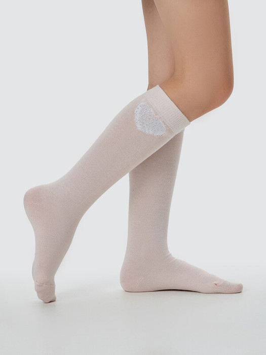 Рис.3335 Детские однотонные гольфы c рисунком в виде сердечка и печатью стразами.