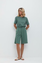 Капри облегающего силуэта с высокой линией талии. Выполнены из интерлока. Пояс широкий, фигурный, с эластичной тесьмой внутри. Боковые швы перенесены на деталь переда. Комфортные легинсы для занятий спортом, активного отдыха и туризма. Рекомендуем!