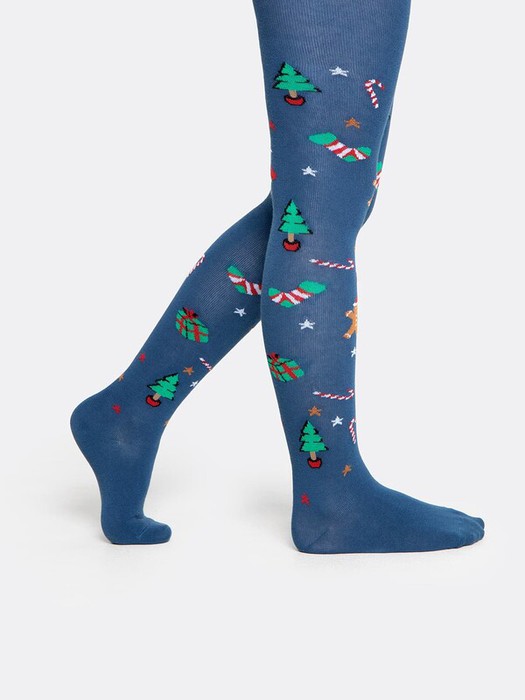 Рис.2635 Гладкие колготки с рисунком в виде ёлок и печенья