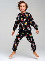 Горловина круглой формы с притачной обтачкой из основного полотна. Рукава длинные втачные. Перед и спинка цельнокроеные. Низ джемпера и рукавов обработан швом в подгибку. Брюки длинные, немного заужены к низу. Пояс цельнокроенный с эластичной тесьмой внутри. Низ брюк застрочен с эластичной тесьмой внутри.