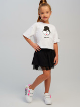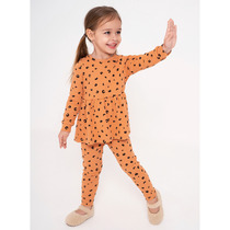 Рукава длинные. Линия плеча спущена. Горловина обработана обтачкой из рибаны. По низу рукавов и джемпера притачены манжеты и пояс из рибаны Брюкид для девочек свободного силуэта. Пояс отрезной из основного полотна с эластичной тесьмой внутри 50RV. По поясу проложены отделочные строчки. Низ брюк обработан швом в подгибку.