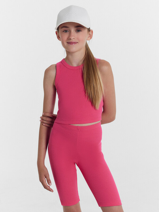 Топ для девочек прилегающего силуэта. Горловина круглая. Проймы и горловина окантованы бейкой из основного полотна. Низ изделия обработан швом в подгибку.