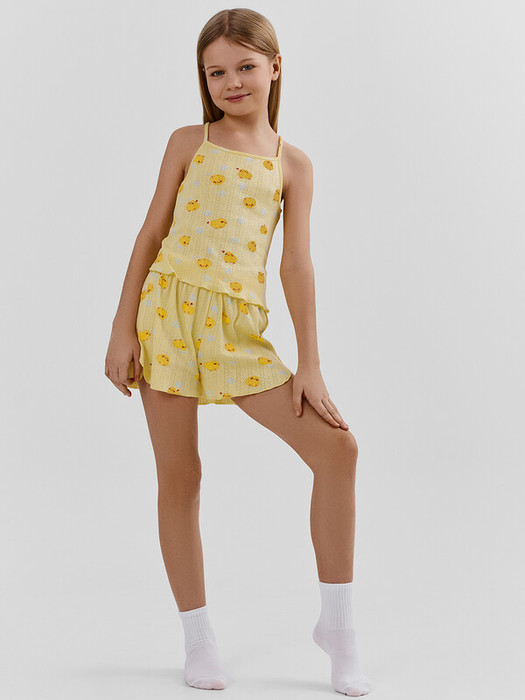 Комплект для девочек состоит из топа и шортов.