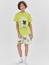 Этот домашний комплект для мальчиков — идеальное сочетание удобства, практичности и мягкости натуральных тканей. Он включает футболку и прямые брюки, выполненные из хлопка, который обеспечивает хорошую воздухопроницаемость и мягкость, особенно важные для активных детей. Футболка имеет классический круглый вырез с усиленной обтачкой из рибаны — она помогает сохранять форму даже после многократных стирок. Короткие рукава и низ футболки обработаны швом вподгибку, что придает изделию аккуратный и законченный вид. Брюки дополнены эластичным поясом, который мягко фиксируется на талии, не создавая дискомфорта. Прямой крой обеспечивает свободу движений, а застроченный низ делает их устойчивыми к износу. Комплект не только хорошо сидит, но и легко надевается — отличный выбор для дома, игр, сна или отдыха. Простота исполнения и качественные детали делают его универсальным вариантом на каждый день.