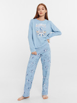 Уютный флисовый комплект. Состоит из лонгслива и брюк. Лонгслив длиной до середины ягодиц, прямого силуэта, с круглой горловиной, спущенной линией плеча и длинными рукавами на манжетах. Брюки длинные, зауженные к низу, с эластичным поясом, на манжетах. Комфорт и особая нежность!