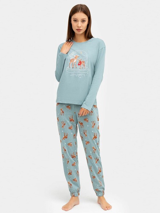 Совместные покупки Омск Женская одежда Пижамы, халаты — Mark Formelle КОМПЛЕКТ ЖЕНСКИЙ (ДЖЕМПЕР, БРЮКИ) 592510 592510 сланец +милые олен