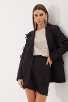 Джемпер женский свободного силуэта. Горловина круглой формы с обтачкой из основного полотна. Рукава реглан, с отрезной манжетой по низу. В боковых швах обработаны разрезы. По низу джемпера отрезной пояс.