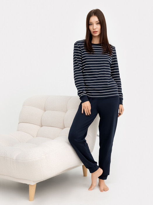 Совместные покупки Омск Женская одежда Пижамы, халаты — Mark Formelle КОМПЛЕКТ ЖЕНСКИЙ (ДЖЕМПЕР, БРЮКИ) 592514 592514 полоска неви с мол