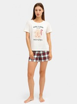 Совместные покупки Омск Женская одежда Домашняя одежда — Mark Formelle КОМПЛЕКТ ЖЕНСКИЙ (ДЖЕМПЕР, ШОРТЫ) 592325 592325 молочный +клетка н