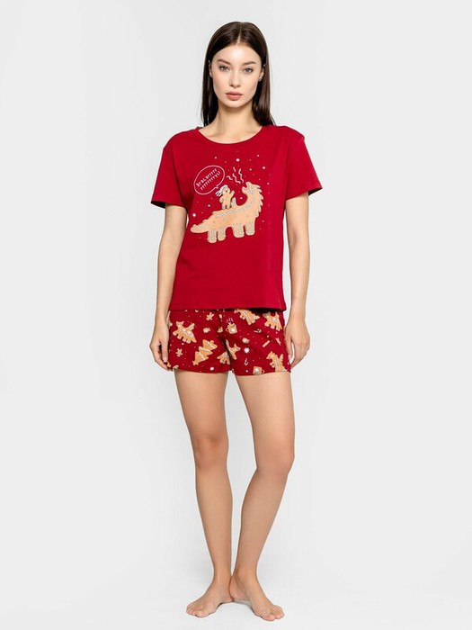 Совместные покупки Омск Женская одежда Домашняя одежда — Mark Formelle КОМПЛЕКТ ЖЕНСКИЙ (ДЖЕМПЕР, ШОРТЫ) 592325 592325 вишневый +печеньки