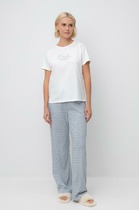 Домашняя пижама с принтом создает атмосферу уютного праздника. Этот набор из футболки и шорт станет верным спутником ваших расслабленных вечеров.