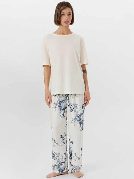 Совместные покупки Омск Женская одежда Пижамы, халаты — Mark Formelle КОМПЛЕКТ ЖЕНСКИЙ (ФУТБОЛКА, БРИДЖИ) 592541 592541 молочный +лошади