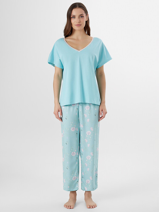 Совместные покупки Омск Женская одежда Пижамы, халаты — Mark Formelle КОМПЛЕКТ ЖЕНСКИЙ (ФУТБОЛКА, БРИДЖИ) 592545 592545 мятный +цветы на