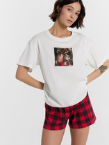 Женский домашний комплект, состоящий из рубашки и брюк, — это идеальное решение для комфортного отдыха и уютных домашних вечеров. Модель выполнена из натурального хлопка, который отличается мягкостью, воздухопроницаемостью и гипоаллергенными свойствами, обеспечивая приятные ощущения на коже и свободу движений. Рубашка свободного силуэта с отложным воротником выглядит аккуратно и стильно, а короткий рукав с немного спущенной линией плеча подчеркивает расслабленный характер изделия. Обработка рукава и низа швом в подгибку делает модель аккуратной и долговечной. Центральная застёжка на пуговицы с петлями добавляет удобства и классического акцента. Брюки свободного силуэта с посадкой на талии обеспечивают комфорт и не стесняют движений. Эластичный пояс мягко фиксируется, а декоративная бейка из основного полотна, протянутая через пробитые петли, добавляет стильный элемент. Низ брюк также обработан швом в подгибку, что сохраняет форму и аккуратность. Комплект идеально подходит для сна, отдыха или домашних дел, сочетая в себе практичность, уют и эстетичный внешний вид.