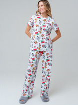 Комплект женский состоит из рубашки и шорт. Рубашка свободного силуэта, с отложным воротником. Рукав втачной короткий, линия плеча немного спущена, рукав обработан вподгибку. Рубашка с центральной застежкой с петлями и пуговицами. Низ застрочен швом в подгибку.