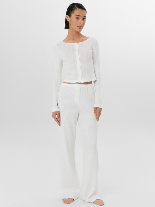 Пижама женская с брюками — это эталон комфорта и элегантности для вашего ночного отдыха. Комплект состоит из приталенного жакета и прямых брюк, выполненных из натурального хлопка, который обеспечивает идеальную воздухопроницаемость и мягкость. Жакет с овальной горловиной и длинными рукавами подчеркивает изящество силуэта, а застежка на пуговицы добавляет классическую ноту. Брюки с эластичным поясом на резинке гарантируют свободную посадку и удобство во время сна.