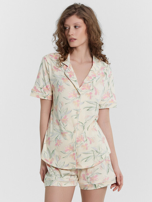 Совместные покупки Омск Женская одежда Пижамы, халаты — Mark Formelle КОМПЛЕКТ ЖЕНСКИЙ (ЖАКЕТ, ШОРТЫ) 592478 592478 лилии на сливочном 1