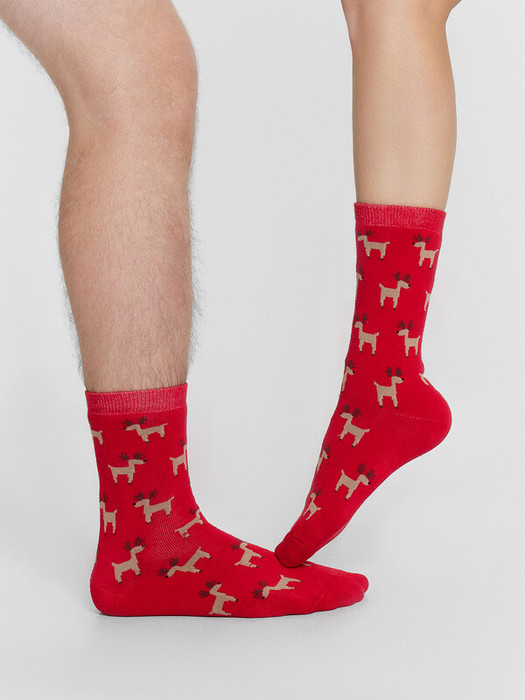 рис.2594 Носки унисекс классические, махровые с рисунком в виде оленей
