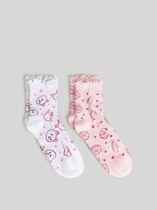 рис.2933  Мультипак  из трех пар детских гладких носков без борта, с рисунком в виде разных зверюшек и цветным мыском.