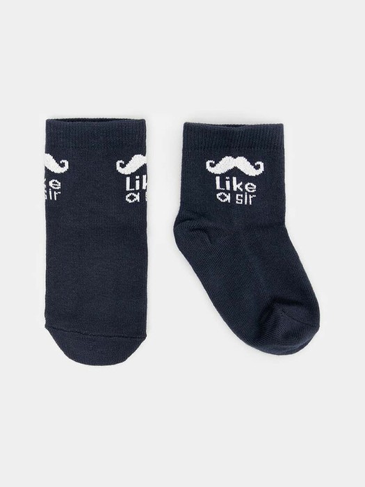 Рис. 356. Гладкий детский  носок с рисунком в виде усов и надписи Like a sir на паголенке