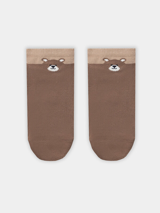 рис.3181 Детский укороченный носок с рисунком в виде двух цветов основы и мишки.