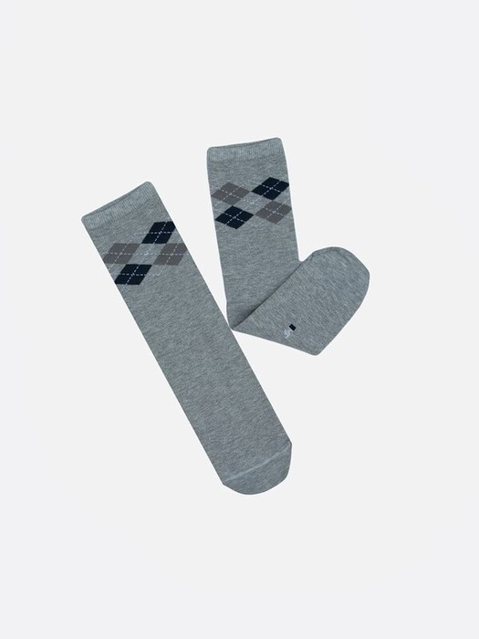 рис.1493 Детский носок гладкий с рисунком в виде ромбиков на паголенке.
