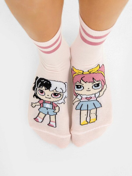 рис.2642  Детский классический носок с рисунком в виде кукол.