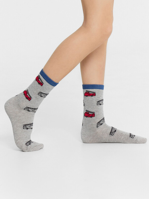 рис.3070  Детские классические носки с рисунком в виде машинок с цветным бортиком.
