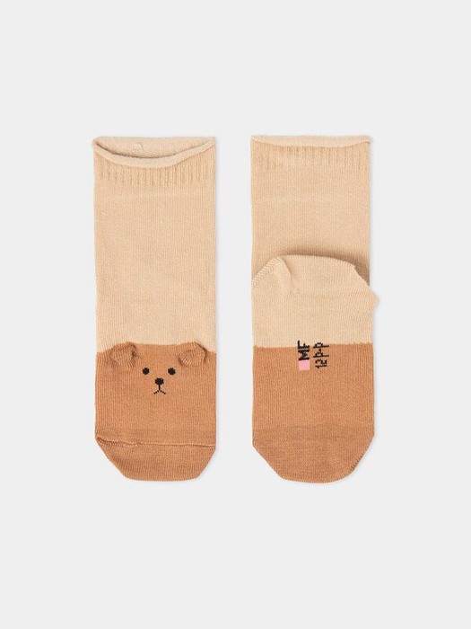 рис.2078   Детский гладкий носок без борта, с рисунком в виде мордочки медведя и 3D ушками.