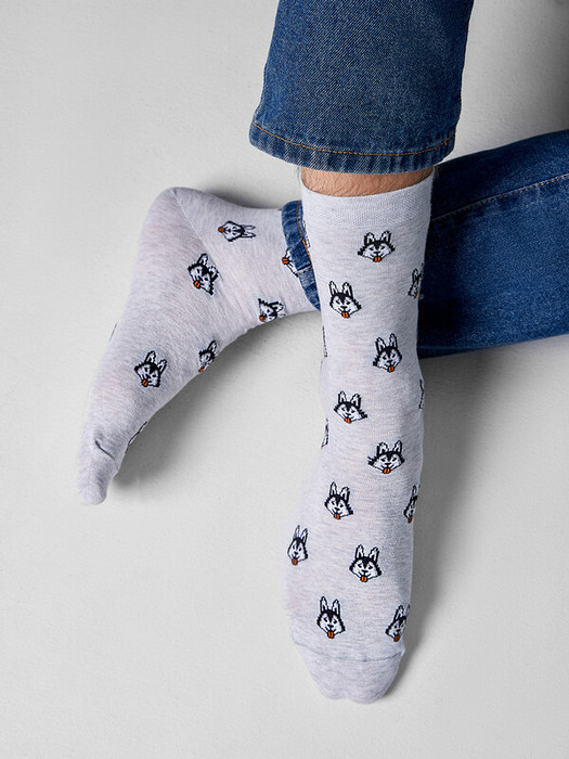 рис.3088 Мужской носок классический, высокий, с рисунком в виде хаски.