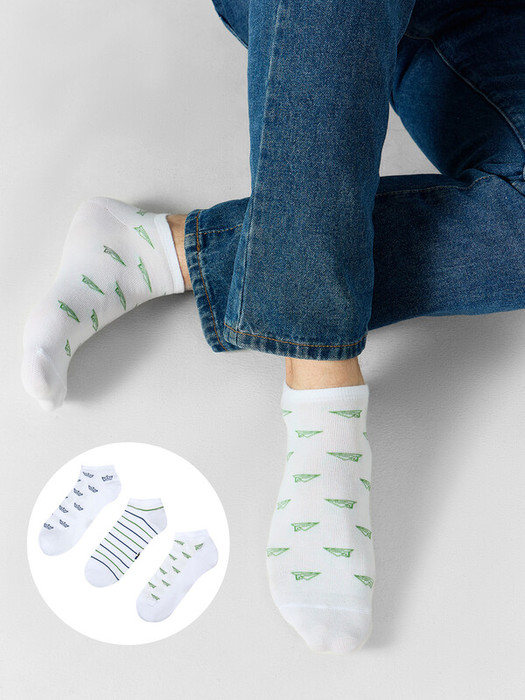 рис.2736  Мультипак из трех пар укороченных мужских носков с рисунком в виде оригами-самолетиков, корабликов и полосок.
