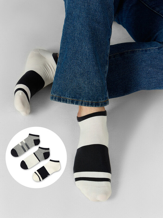 рис.3102 Мультипак из трех пар укороченных мужских носков с рисунком в виде сочетаний полосок разного цвета.