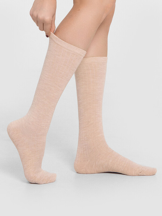 рис.2960 Классический гладкий завышенный женский носок с перекидкой-лапшей из смешанной пряжи с содержанием шерсти.