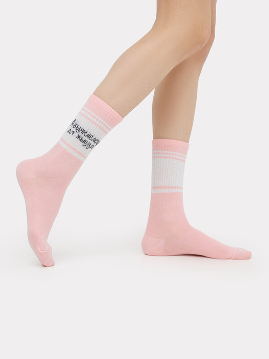 Женский носок с высоким плотным бортом и рисунком в виде надписи "Усеагульная млявасць, абыякавасць да жыцця".