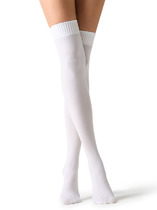 рис.3056 Женские носки высокие классические без резинки с рисунком в виде поперечной полоски и сердечек.